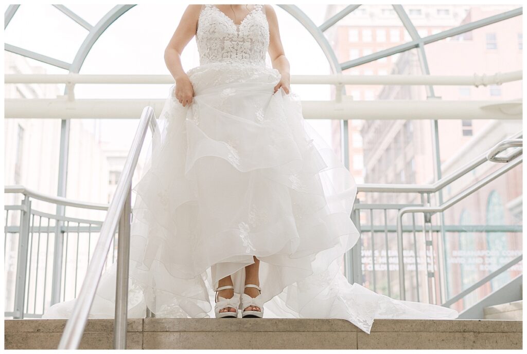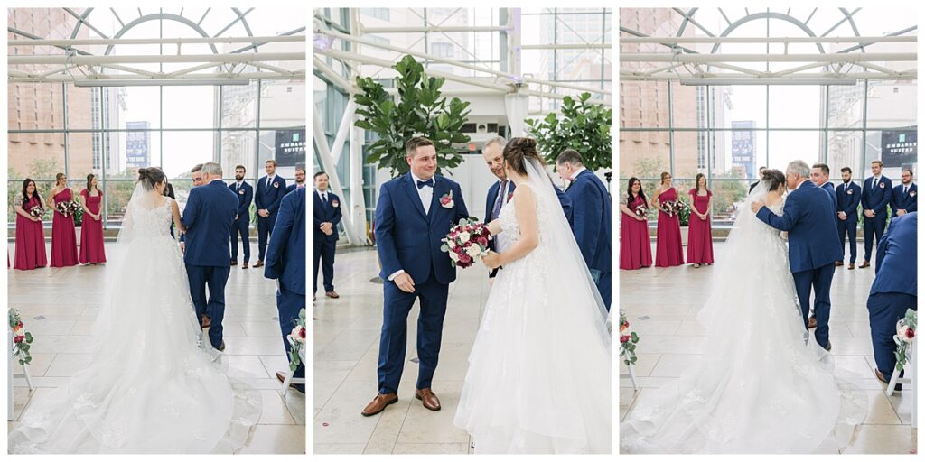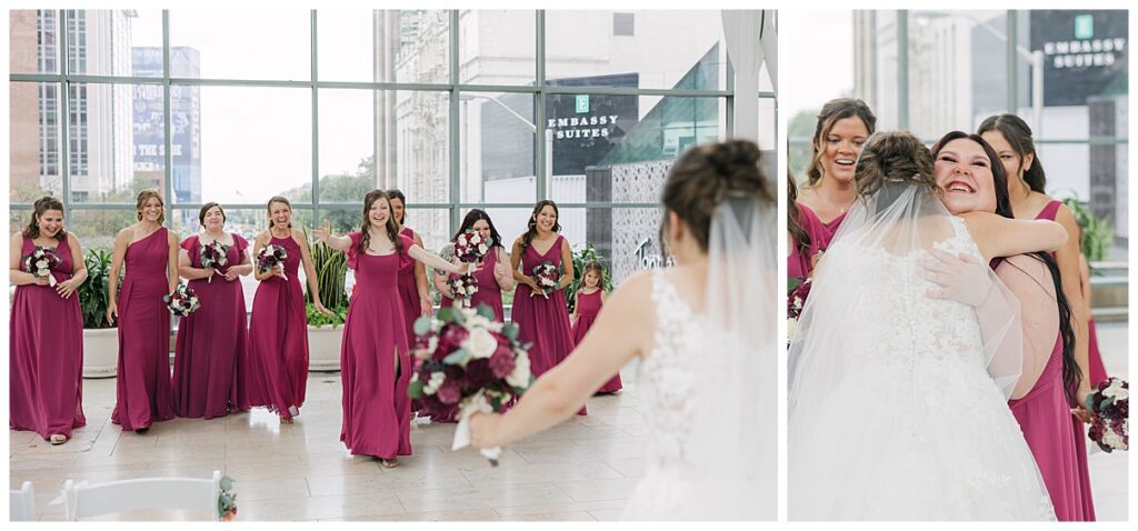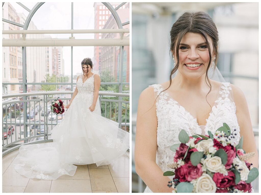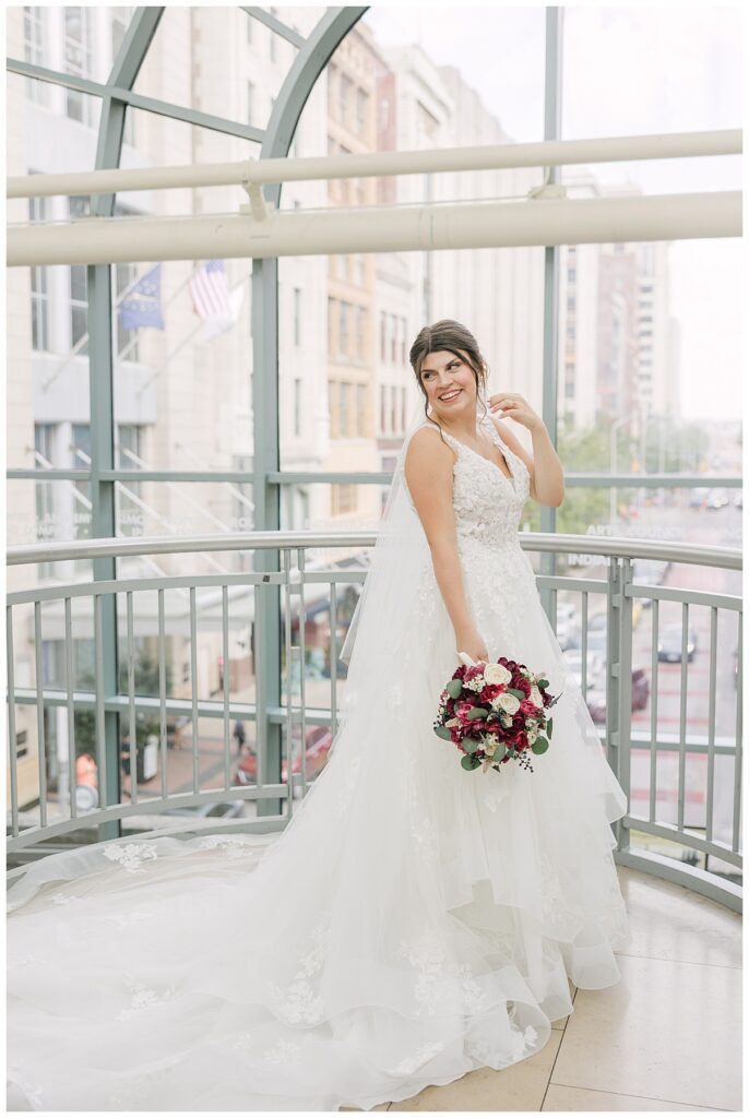 Congratulations to this sweet and beautiful couple! Ashley and Daniel were married a few weeks ago in downtown Indy at the stunning Indianapolis Artsgarden! It was an incredible day. The morning was filled with smiles and laughter as everyone was busy getting ready. We were blessed with amazing moments and memories as Ashley had some first looks with her dad and her brother and her bridesmaids. And I have to tell you, the first look with Ashley’s brother was one of the sweetest things I have ever seen. He cried and hugged her so tight! It was precious! Ashley and Daniel’s bridal party and family members were so kind and wonderful to work with as we took lots of beautiful photos before the guests arrived. Before the ceremony, Ashley and Daniel had a time of prayer and I was blessed to witness and capture yet another sweet and wonderful moment. The ceremony was gorgeous and pointed us all back to Christ. I loved getting to hear the words of wisdom from their pastors. The rest of the evening was filled with more fun photos around Indy, good food and lots and lots of dancing! Congrats again, Ashley and Daniel! So excited to see what God has in store for you!