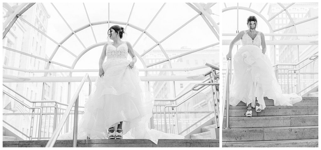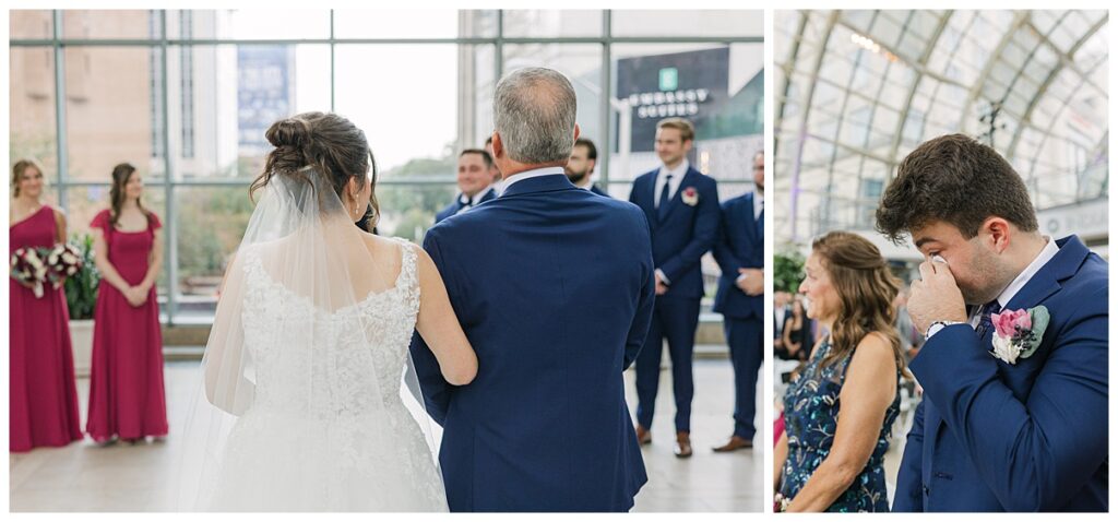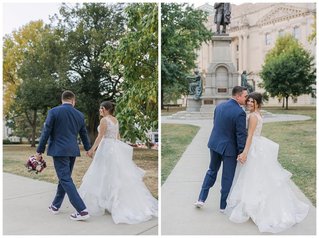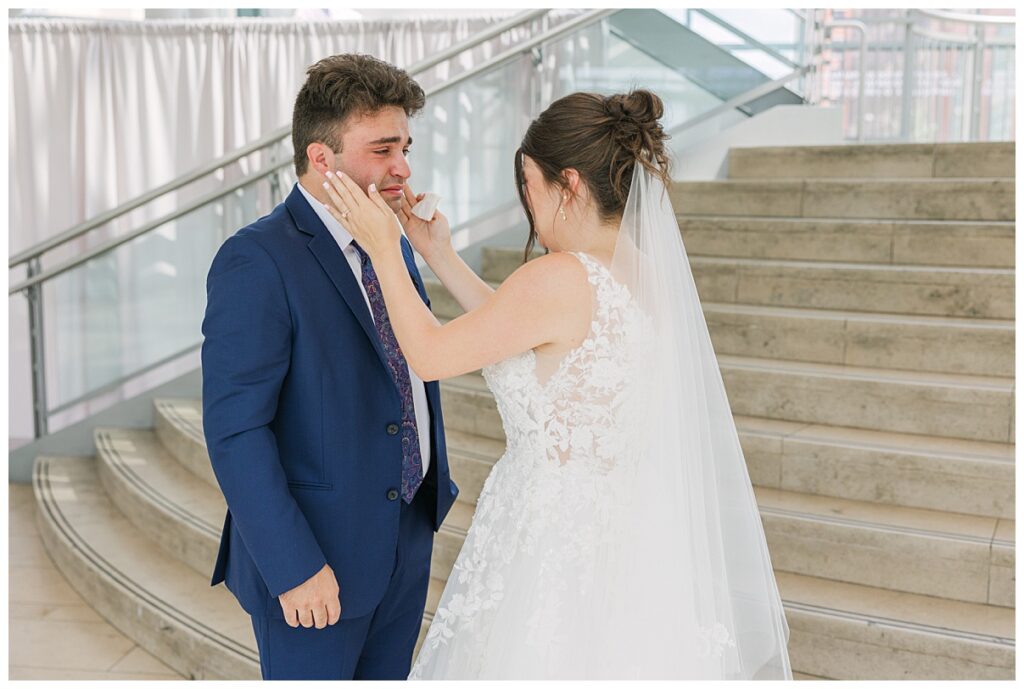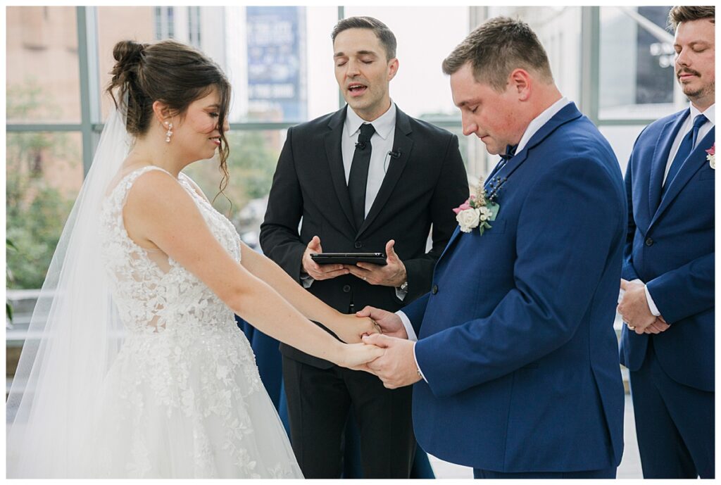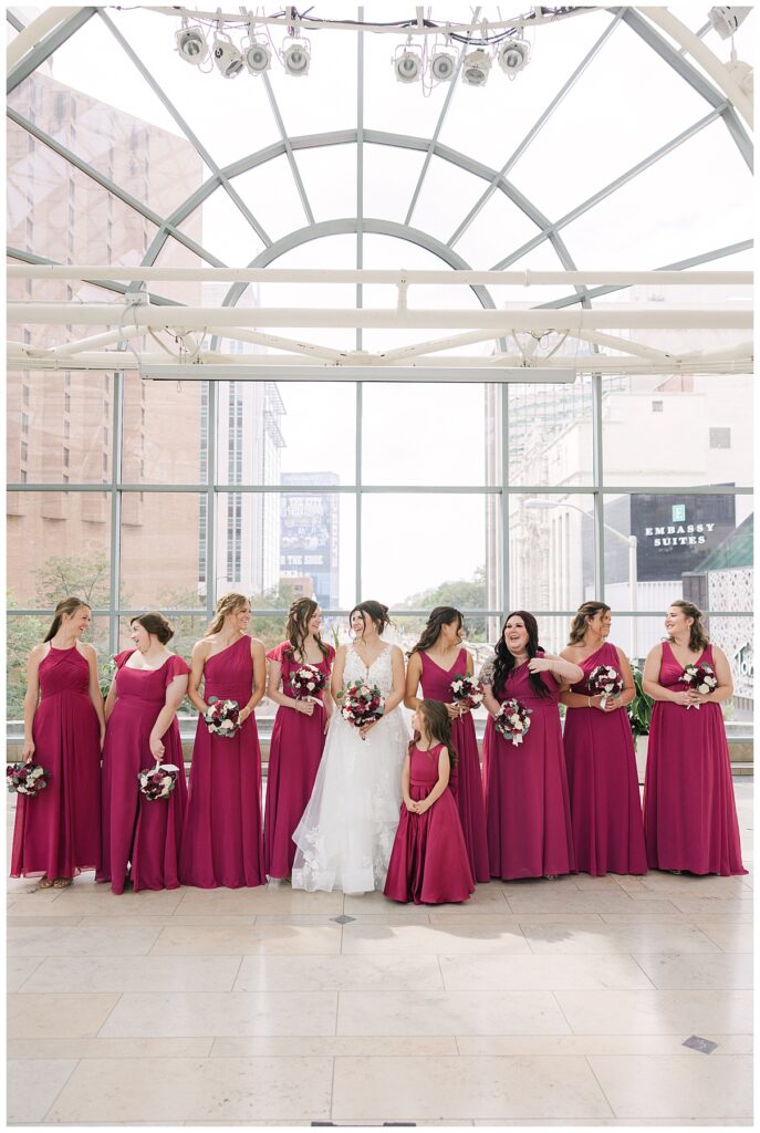 Congratulations to this sweet and beautiful couple! Ashley and Daniel were married a few weeks ago in downtown Indy at the stunning Indianapolis Artsgarden! It was an incredible day. The morning was filled with smiles and laughter as everyone was busy getting ready. We were blessed with amazing moments and memories as Ashley had some first looks with her dad and her brother and her bridesmaids. And I have to tell you, the first look with Ashley’s brother was one of the sweetest things I have ever seen. He cried and hugged her so tight! It was precious! Ashley and Daniel’s bridal party and family members were so kind and wonderful to work with as we took lots of beautiful photos before the guests arrived. Before the ceremony, Ashley and Daniel had a time of prayer and I was blessed to witness and capture yet another sweet and wonderful moment. The ceremony was gorgeous and pointed us all back to Christ. I loved getting to hear the words of wisdom from their pastors. The rest of the evening was filled with more fun photos around Indy, good food and lots and lots of dancing! Congrats again, Ashley and Daniel! So excited to see what God has in store for you!